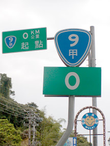 位在青潭橋旁的省道台9甲起點及0公里標示牌