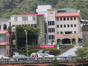在坪林新橋上遠眺坪林鄉農會(左)&坪林鄉公所(右)