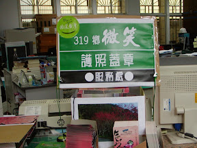 志工阿姨才相視而笑 並指指櫃台左側的章